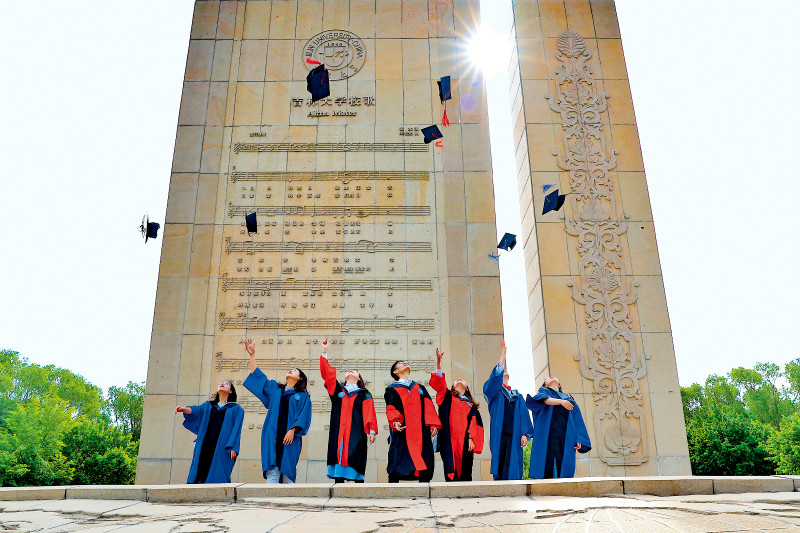 吉林大学学生在校歌碑前合影留念 吉林大学供图