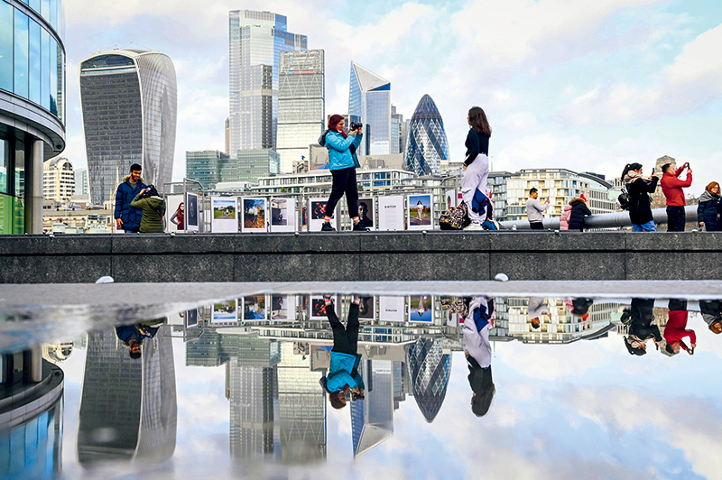 2月1日,英国伦敦,人们在金融城大楼前留影 史蒂芬·程摄/本刊