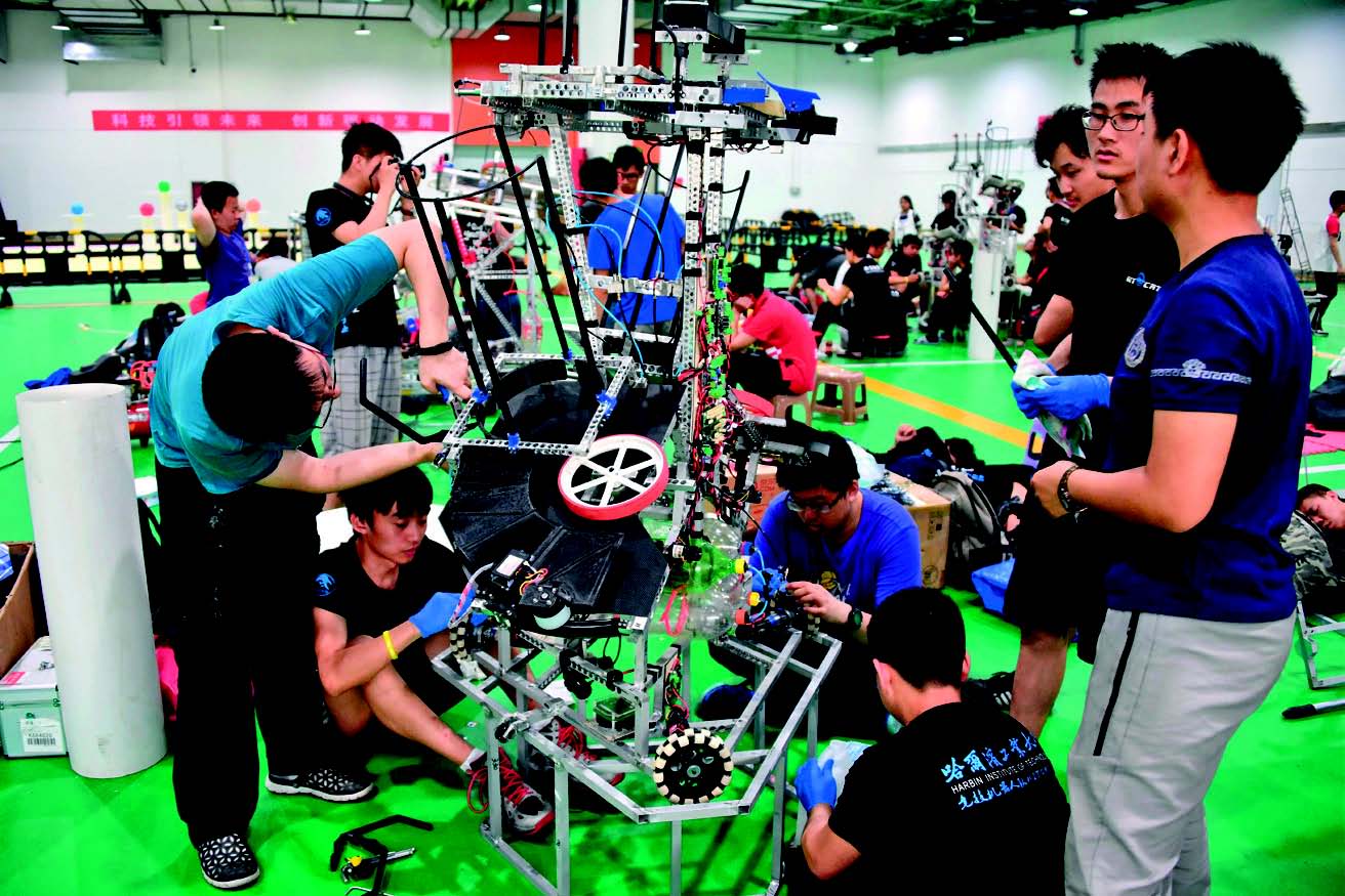 全国大学生机器人大赛上调试机器人 徐速绘摄/本刊