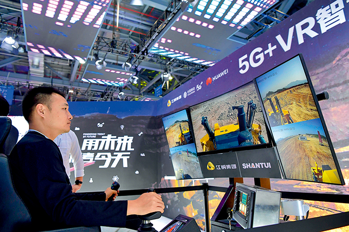 工作人员观众演示一款智慧采矿车的操作 彭昭之摄/本刊