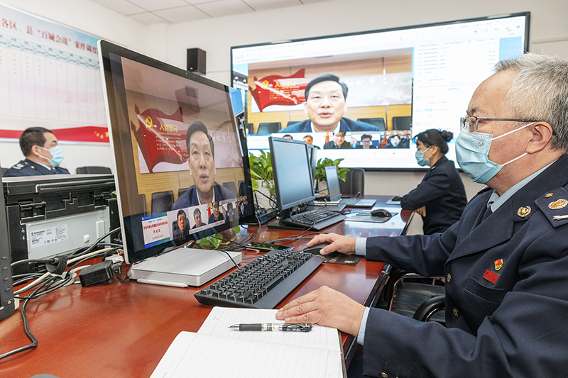 济南市税务局干部在线收看济南市税务局局长蒋学武在“云课堂”的培训动员