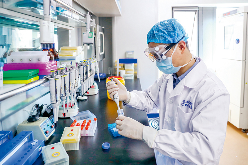 对新型冠状病毒灭活疫苗样品进行杂质检测 张玉薇摄/本刊