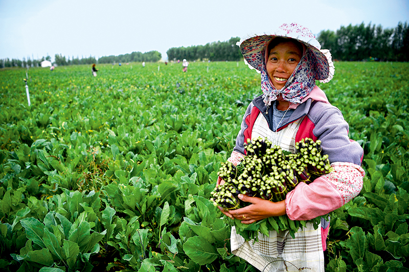 宁夏固原市原州区彭堡镇姚磨村,村民在蔬菜基地采收蔬菜(2018年8月27日摄) 王鹏摄/本刊