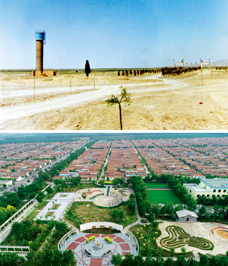 上图为宁夏银川市永宁县闽宁镇建设初期的资料照片;