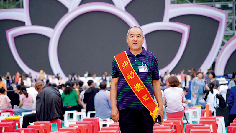 2020左权民歌汇开幕式现场,段伟明披挂“劳动模范”绶带 中华慈善总会供图