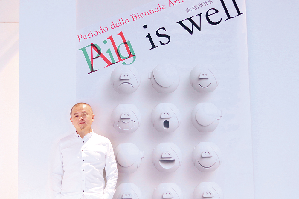 “艺术家将猪的眼睛用特意夸大的耳朵捂住,用诙谐的黑色幽默调侃了双年展主题和当代人重要的沟通象征符号——网络上无处不在的‘表情包’,同时致敬中国猪年,取谐音寓意万事顺利,这是中国文化的体现。”意大利国家馆策展人Luca Beatrice点评。