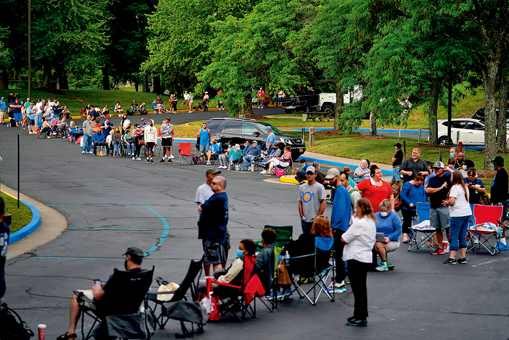 6月18日,人们在美国肯塔基州法兰克福排队等待就业中心开门 新华社/路透