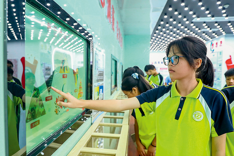 9月21日,广西灵山县青少年法治教育实践基地,当地学生利用互动设备了解毒品的危害 张玉薇摄/本刊