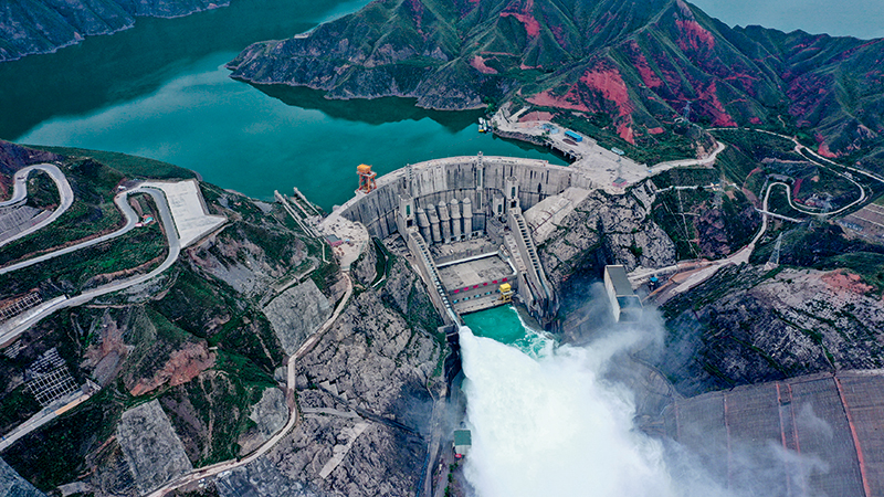 着力打造千万千瓦级可再生能源基地。这是青海省境内的黄河上游李家峡水电站提门泄水(7月9日摄) 吴刚摄/本刊