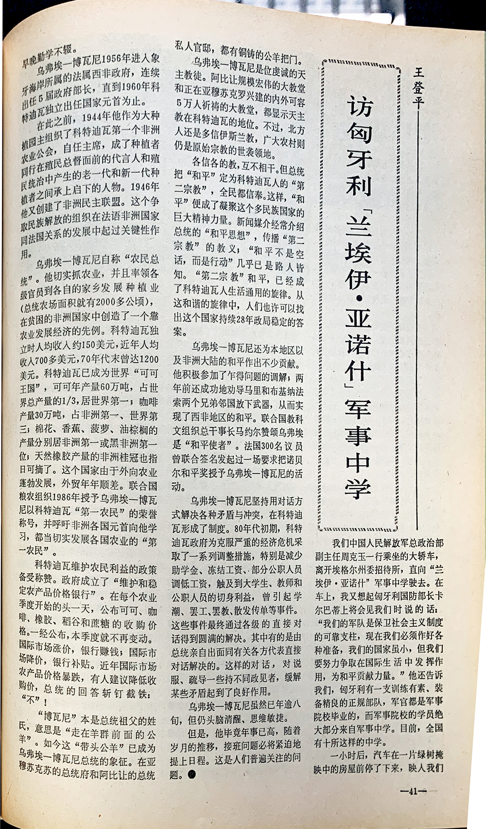 一连四周,我每周都盼着《瞭望》杂志来,但没有动静。又过了几天,一次午饭后,我回到办公室,刚想趴在桌子上休息会儿。“咚”的一声,门被打开了。一位战友手举一本杂志,兴冲冲地告诉我,你写的《访匈牙利“兰埃伊·亚诺什”军事中学》在第35期《瞭望》登出来了。