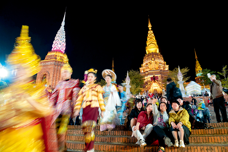 2020年12月25日,游客在西双版纳州景洪市的星光夜市上合影 陈欣波摄/本刊