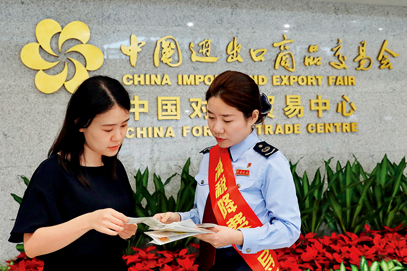广州税务税收宣传志愿队到中国进出口商品交易会(广交会)开展优惠政策辅导(2020年6月5日摄) 陈洁茵摄