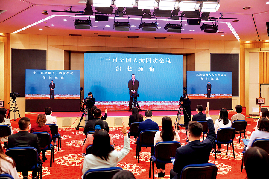 3月5日,十三届全国人大四次会议举行首场“部长通道”采访活动。