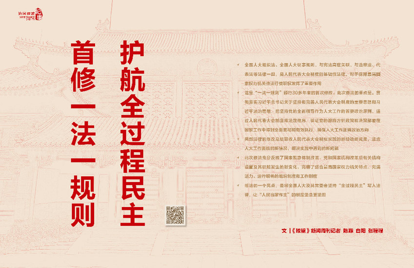➤修法的一个亮点,是将全国人大及其常委会坚持“全过程民主”写入法律,让“人民当家作主”的制度堡垒更坚固