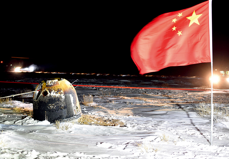 2020年12月17日凌晨,嫦娥五号返回器携带月球样品,采用半弹道跳跃方式再入返回,在内蒙古四子王旗预定区域安全着陆 任军川摄/本刊