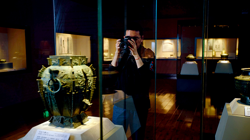 黄翼说,即使是多次拍摄同样的文物,也不会空手而归,而是根据现场情况调整拍摄的方式。他已经拍过七八次长信宫灯,每次都能拍出不同的照片。