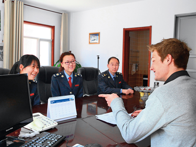 张家口崇礼区税务局干部为外籍人员提供税收政策辅导 张建勋摄