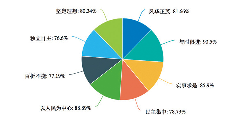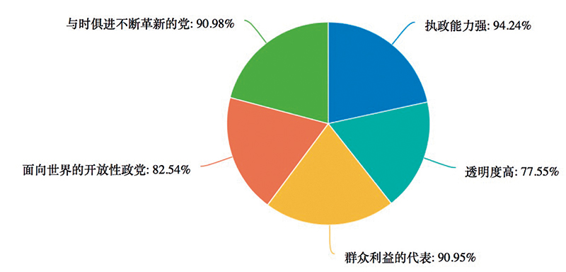 在给中国共产党画像一题中,与时俱进、以人民为中心、实事求是的得票率排在前三。“这些选项非常契合中国共产党特征,党的思想路线是一切从实际出发,理论联系实际,实事求是,在实践中检验真理和发展真理。人民立场是党的根本立场。这些都在画像中得到了体现。”潘金刚说。