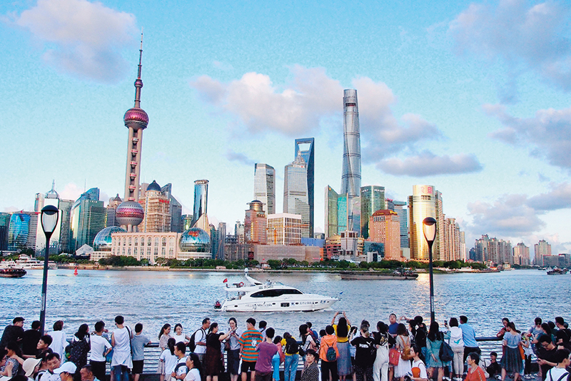 游客在上海外滩欣赏浦东陆家嘴景色(资料照片)陈飞摄 / 本刊
