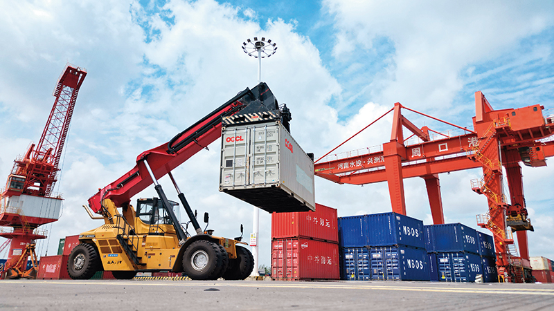 近年来,河南持续提高沙颍河航道等级、港口集疏能力和船闸通航效率,把周口港建设成为“长江以北内河第一大港”。今年6月,国家发展改革委公布30个新一批国家物流枢纽建设名单,周口港口型国家物流枢纽上榜。目前,周口港已开通24条国内集装箱航线和19条国际水运通道,与长江中上游联动“六省七港”。今年上半年,周口港集装箱吞吐量完成9.9万标箱,同比增长46.8%。
