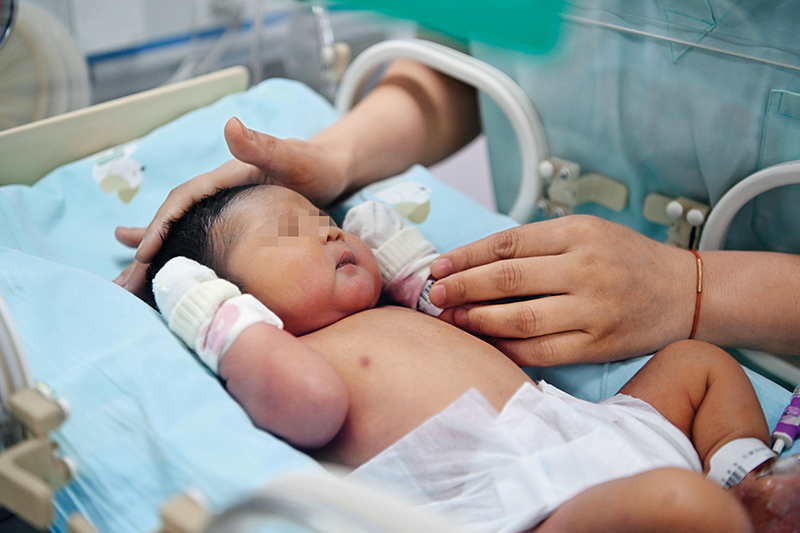 在河北省保定市第四中心医院,医生在照料新生儿(2026 年 2 月 16 日摄)朱旭东摄 / 本刊