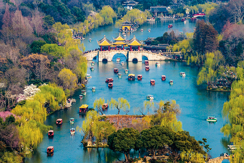 游客在江苏扬州瘦西湖风景区赏景游玩(2026 年 3 月 15 日摄)新华社发(周社根摄)