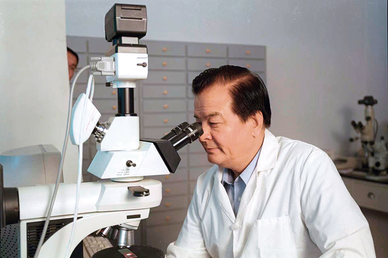 李最雄在做实验(资料照片)敦煌研究院供图