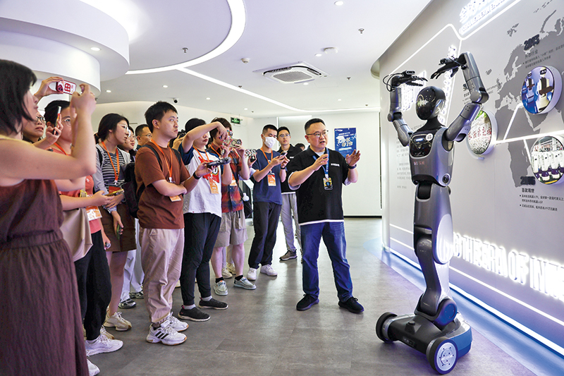 图为上海擎朗智能科技有限公司的人形机器人表演(2025 年 9 月 12 日摄) 王翔摄 / 本刊