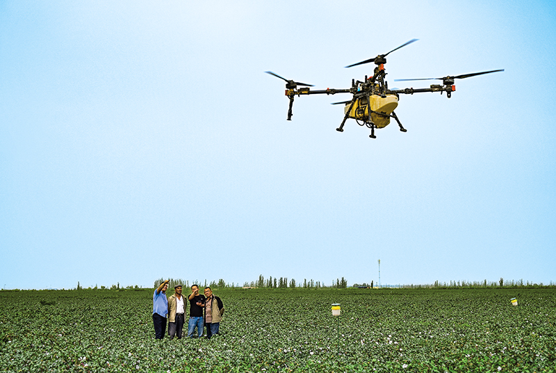 “农业无人机会按照设定好的时间和路线自动起降、定时定点巡田,一天就巡查1000亩,帮助我们快速识别缺苗、断垄区域,及时完成补苗,最大限度保障全田出苗率,为棉田高产稳产打牢根基。”艾海鹏说。