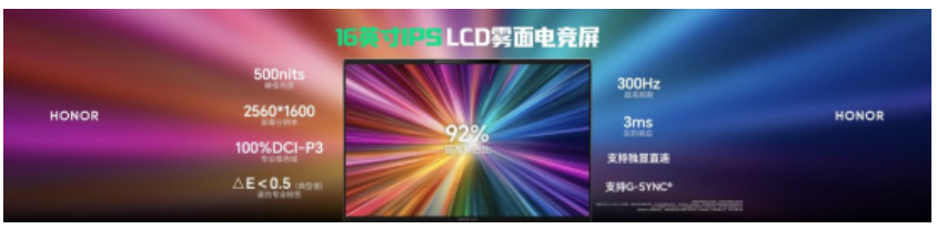 荣耀WIN游戏本H9配备16英寸LCD雾面电竞屏,亮度500nits,色域100% DCI-P3,刷新率达300Hz。行业首发的3D游戏防眩晕技术可减少58%的晕动症状,结合荣耀绿洲护眼技术,兼顾专业显示与视觉舒适。