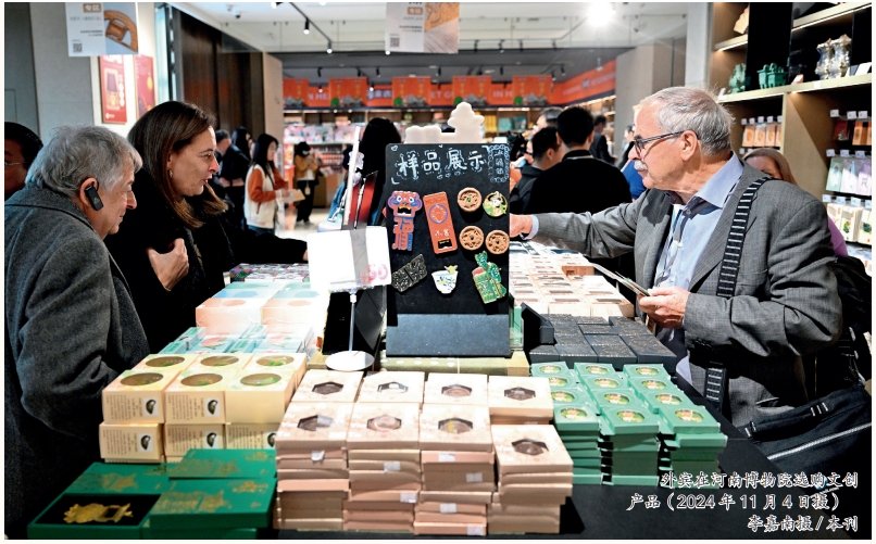目前,河南博物院已孵化出仕女乐队、“虚拟公社”毛毛鹰、小忙与小和等一系列深受观众喜爱的文创IP,推出“豫来遇潮”“非遗来潮”“华服来潮”等子品牌。口袋里、舌尖上、衣摆间,皆可成为历史文化遗存的“移动展厅”。