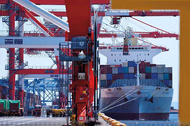 日本东京港口的集装箱和货轮(2025 年 4 月 9 日摄)新华社 / 法新