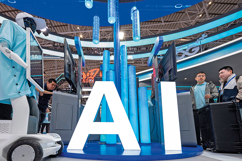 与会者在哈尔滨举办的第三十四届哈洽会中国移动展区参观(2025 年 5 月 19 日摄) 张涛摄 / 本刊