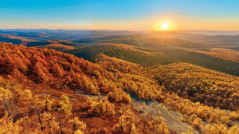 在内蒙古呼伦贝尔市牙克石市绰河源镇拍摄的大兴安岭林海日出(2025 年 9 月 28 日摄)马金瑞摄