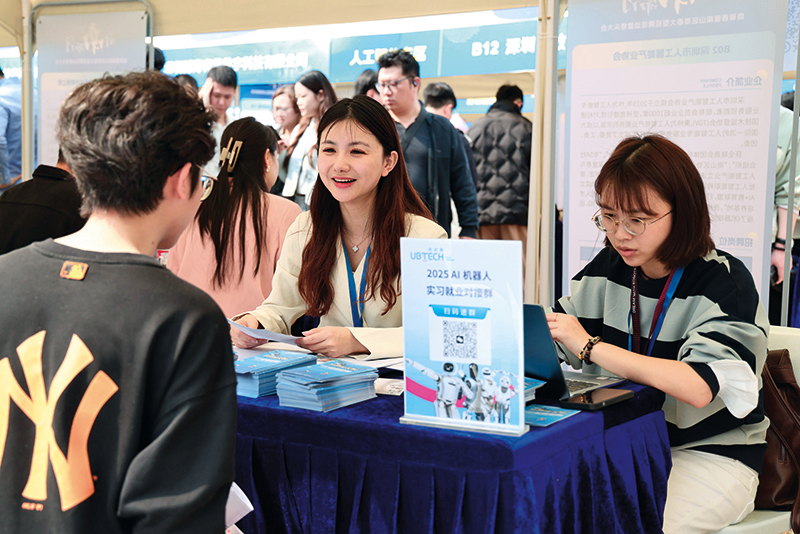 企业负责人与求职者交流(2025 年 2 月 18 日摄) 毛思倩摄 / 本刊