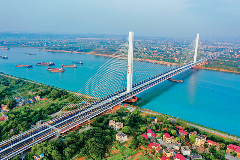 湖南省湘潭市,杨梅洲大桥横跨湘江 湘潭市委宣传部供图
