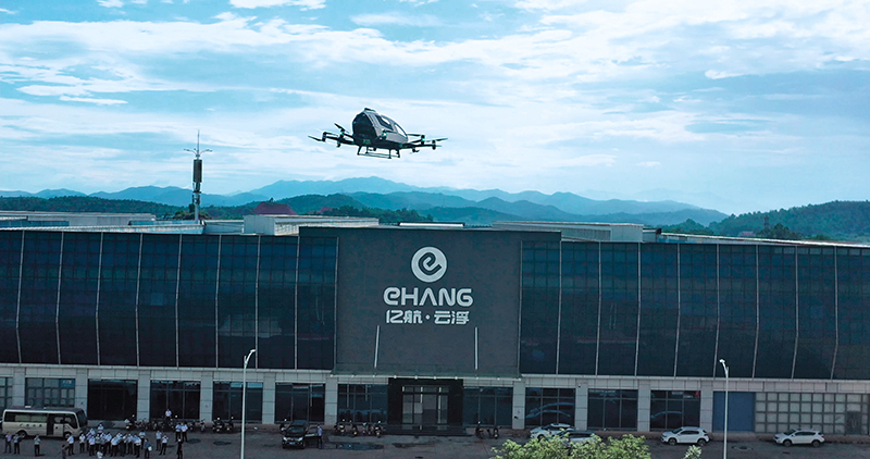 在亿航智能云浮生产基地,亿航无人机正在进行试飞(资料照片) 云浮市委宣传部供图