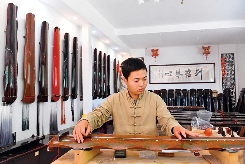 时而低沉悠扬,时而清脆明亮,弦乐声不时从古色古香的庭院传出。写着琴、筝、阮、琵琶字样的招幌沿着青瓦白墙的村居排开。这里是河南省开封市兰考县堌阳镇徐场村。这个仅有105户的豫东小村,有90户生产民族乐器及配套产品,产品涵盖20个品种、30多个系列。