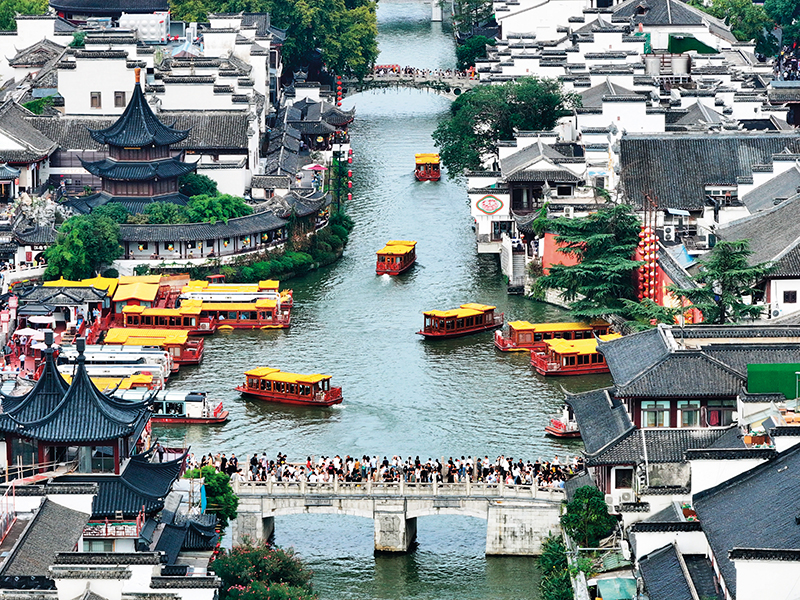 游客在南京夫子庙景区游览(2025 年 10 月 1 日摄) 新华社发(刘建华摄)